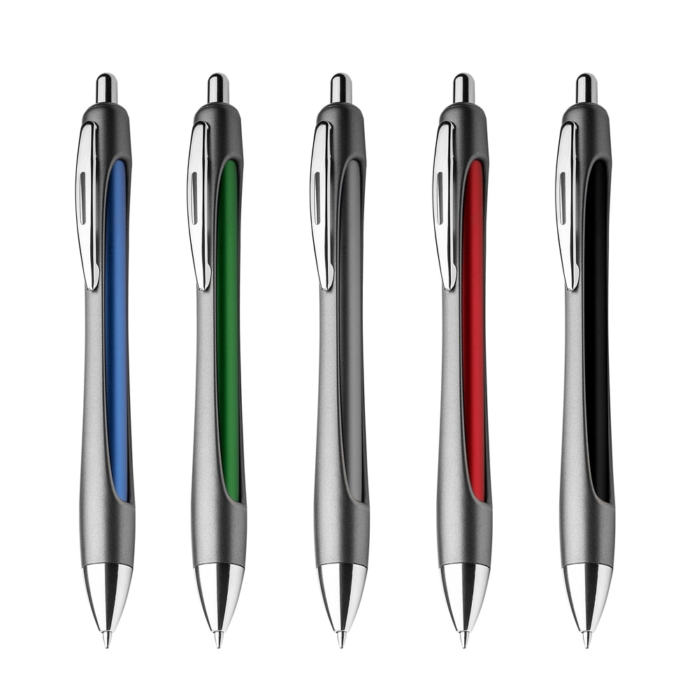 15079 – Caneta em alumínio reciclado com carga esferográfica azul 1.0 mm e acionamento por clique.