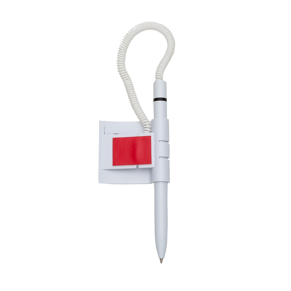 11825 – Caneta balcão plástica com suporte e adesivo auto colante. Carga esferográfica azul. QUANTIDADE MÍNIMA DE 100 PEÇAS!