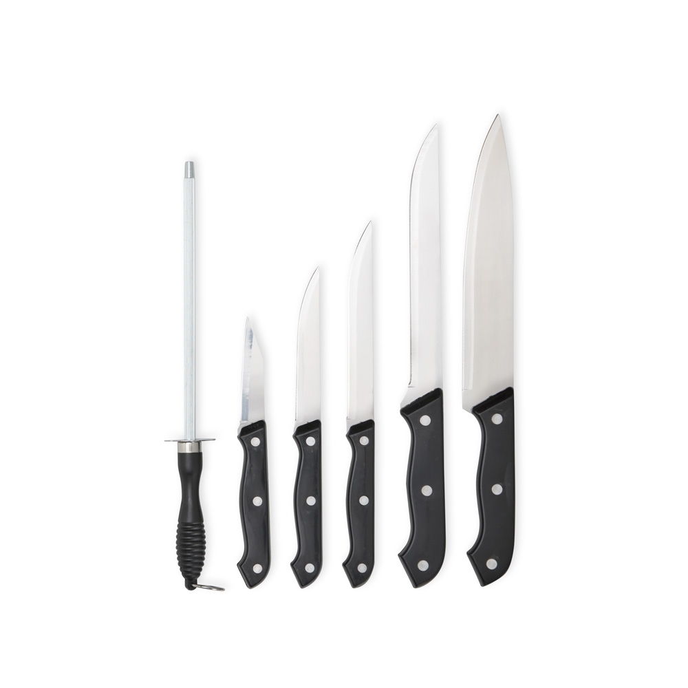 Um kit completo para ajudar na preparação de um churrasco inteiro e deixar o momento de confraternização ainda melhor. Este conjunto traz 7 itens, incluindo 1 tábua em plástico, 1 chaira em aço inox, e 5 facas em tamanhos diferentes do mesmo material: 1 faca de legumes (com 3 polegadas de lâmina), 1 faca de cozinha (com lâmina de 4 polegadas), 1 faca de desossar (com lâmina de 5 polegadas), 1 faca trinchante (com lâmina de 7 polegadas) e 1 faca peixeira (com lâmina de 8 polegadas). Tudo isso acompanhada por uma elegante maleta para facilitar a organização e o transporte do kit.
